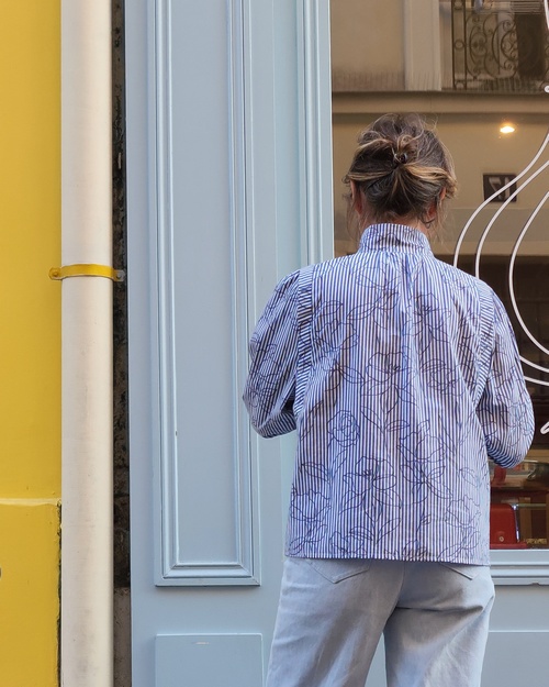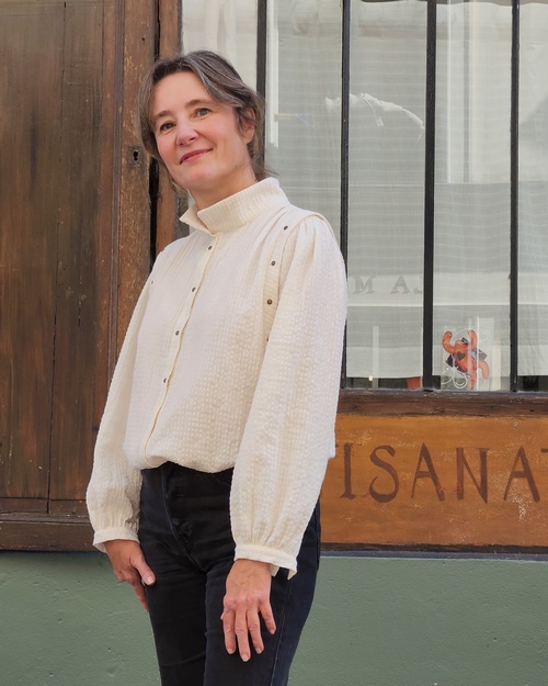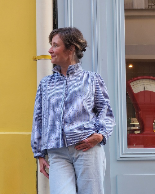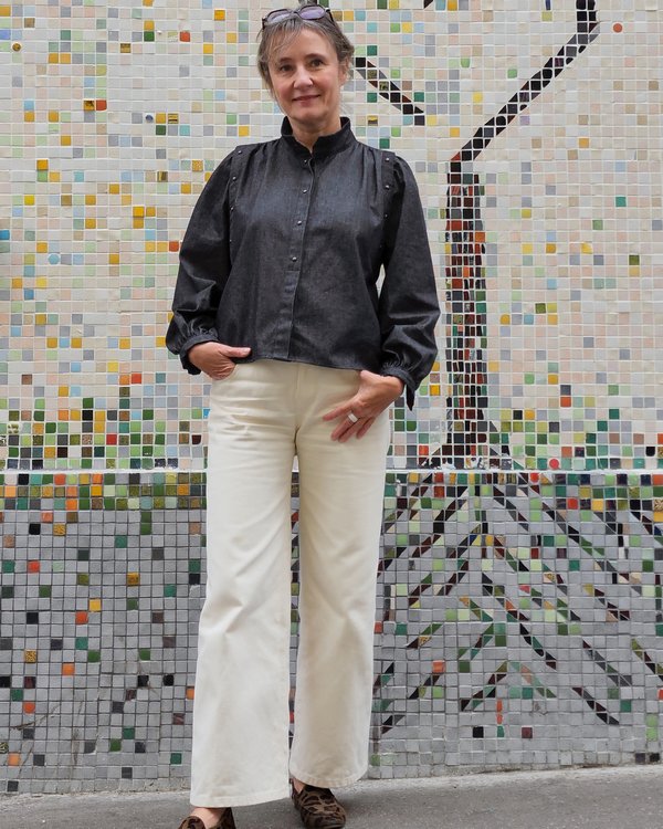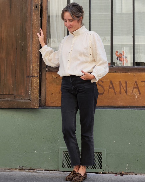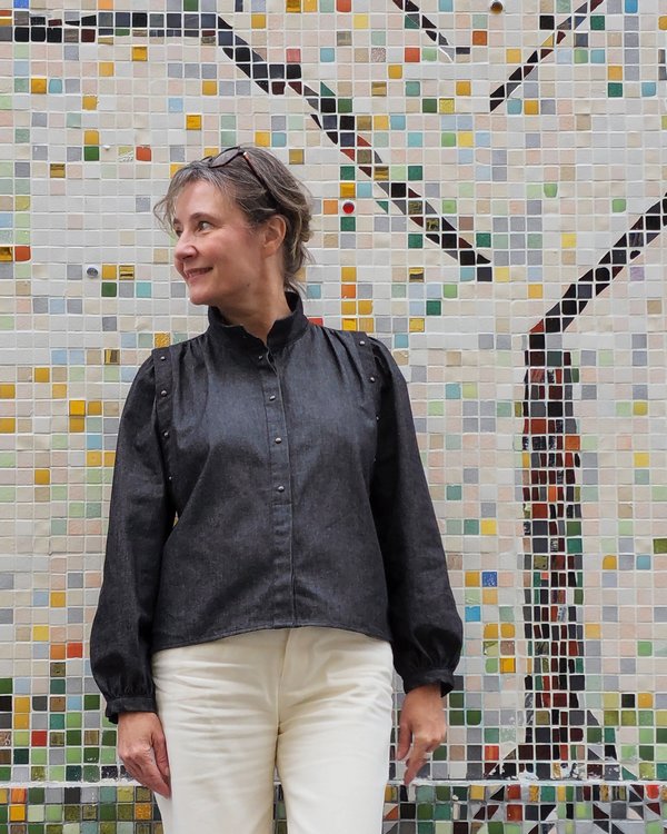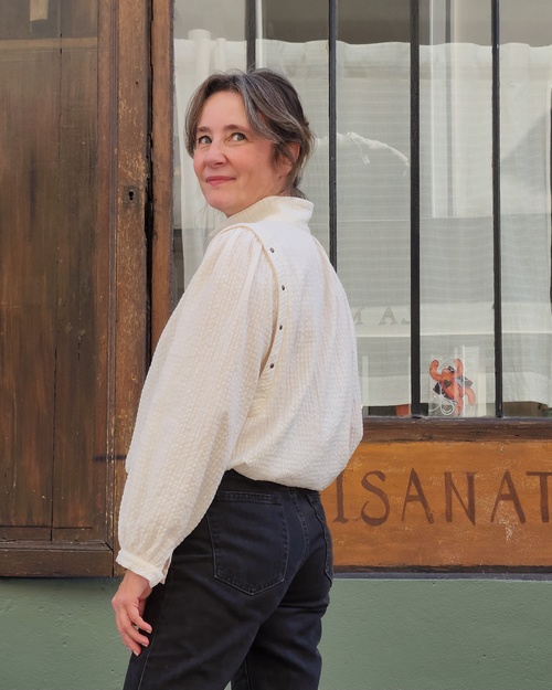 Pour ma stature de 1m60, j’ai retiré 2cm sur la longueur de la blouse.